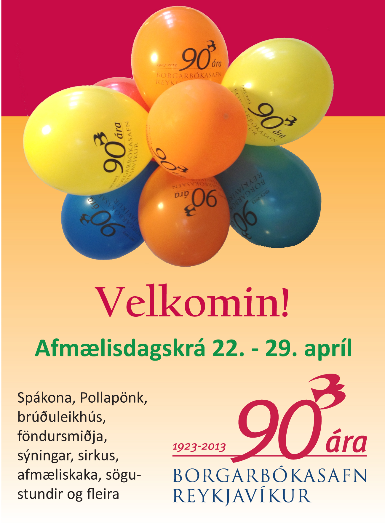 Sumardagskrá á Borgarbókasafninu 25.4.2013 Færðu inn athugasemd Sumri verður fagnað á Borgarbókasafninu með skemmtilegri dagskrá fyrir alla fjölskylduna. Sjá hér. Deila: Click to share on X(Opnast í nýjum glugga) X Click to share on Facebook(Opnast í nýjum glugga) Facebook Líka við Hleð... Tengt efni Viðburðir